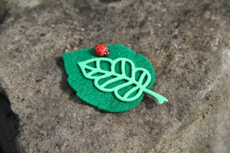 This cute hand-made felt brooch comes complete with a lady-bird embellishment and safety catch fastening. Green and Red. Felt with Metal Fastening.