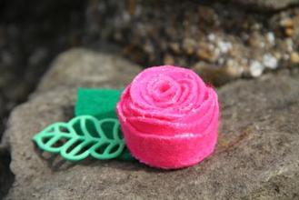 This beautiful hand-made felt rose brooch has all the look of summer. Complete with safety catch fastening. Pink with Pink Glitter and Green. Felt with Metal Fastening.