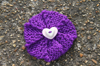 Hand-Knitted Flower brooch with safety catch fastening. Purple & Lilac. Flower: 100% Acrylic.