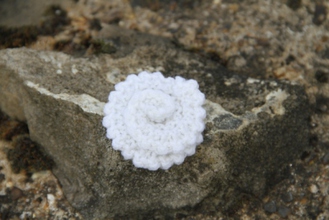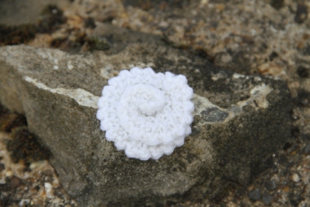 This great hand-knitted white swirled flower brooch comes complete with a safety catch fastening. 100% Acrylic.
