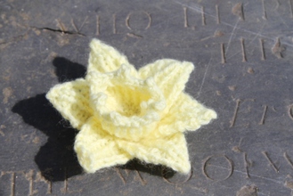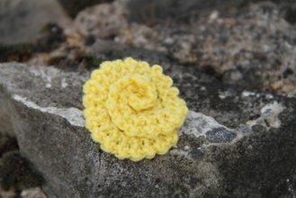 This great hand-knitted yellow swirled flower brooch comes complete with a safety catch fastening. 100% Acrylic.